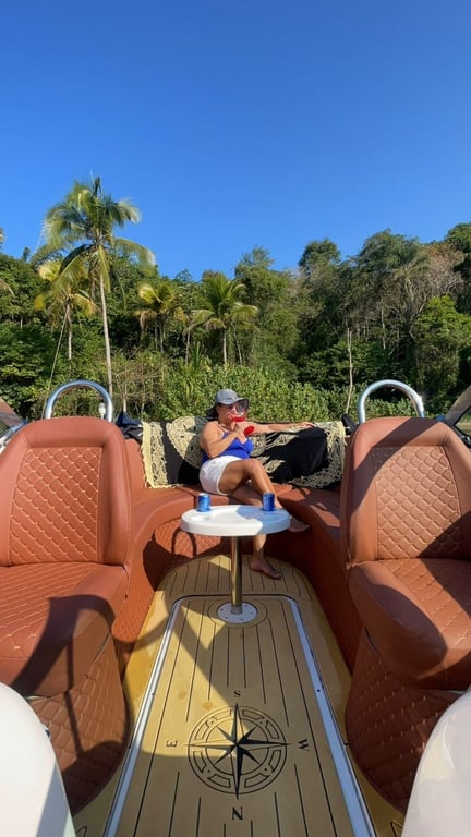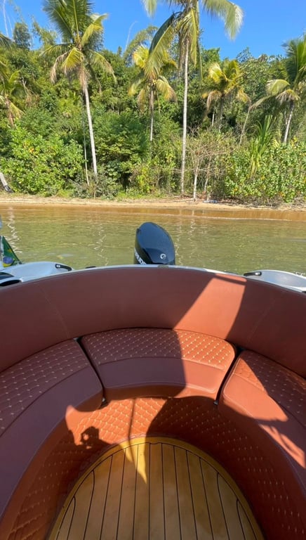 Eu sou a Phoenix 23,5 pés meu nome é Mahalo com capacidade total para 9 pessoas, equipada com um motor Evirunde de 200 HP para o seu passeio privativo com tranquilidade e conforto.